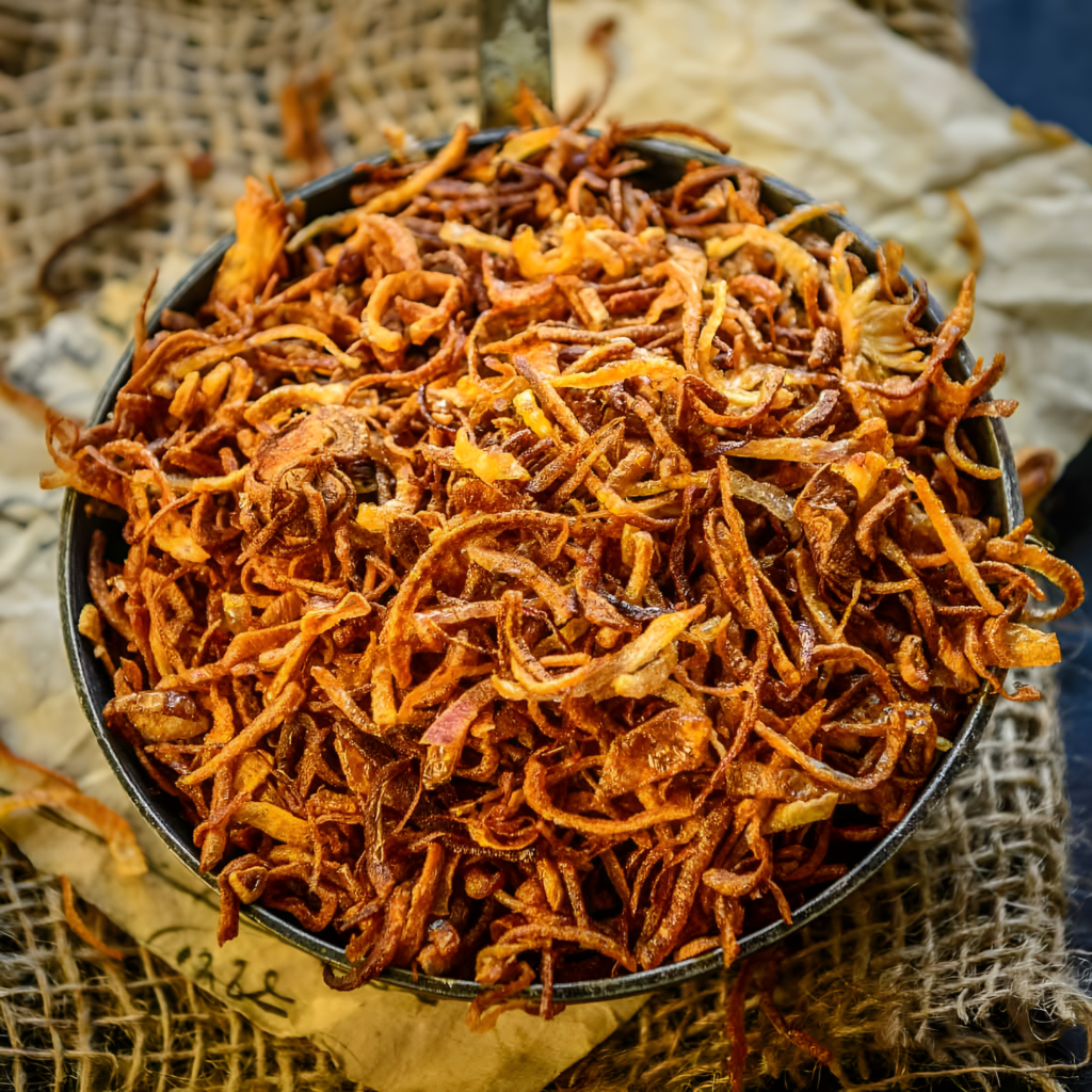 Freshly prepared fried onions.