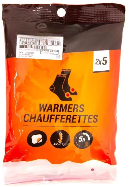 • Glued to your socks, these foot warmers provide regular gentle warmth for 4 to 5 hours for your winter activities.