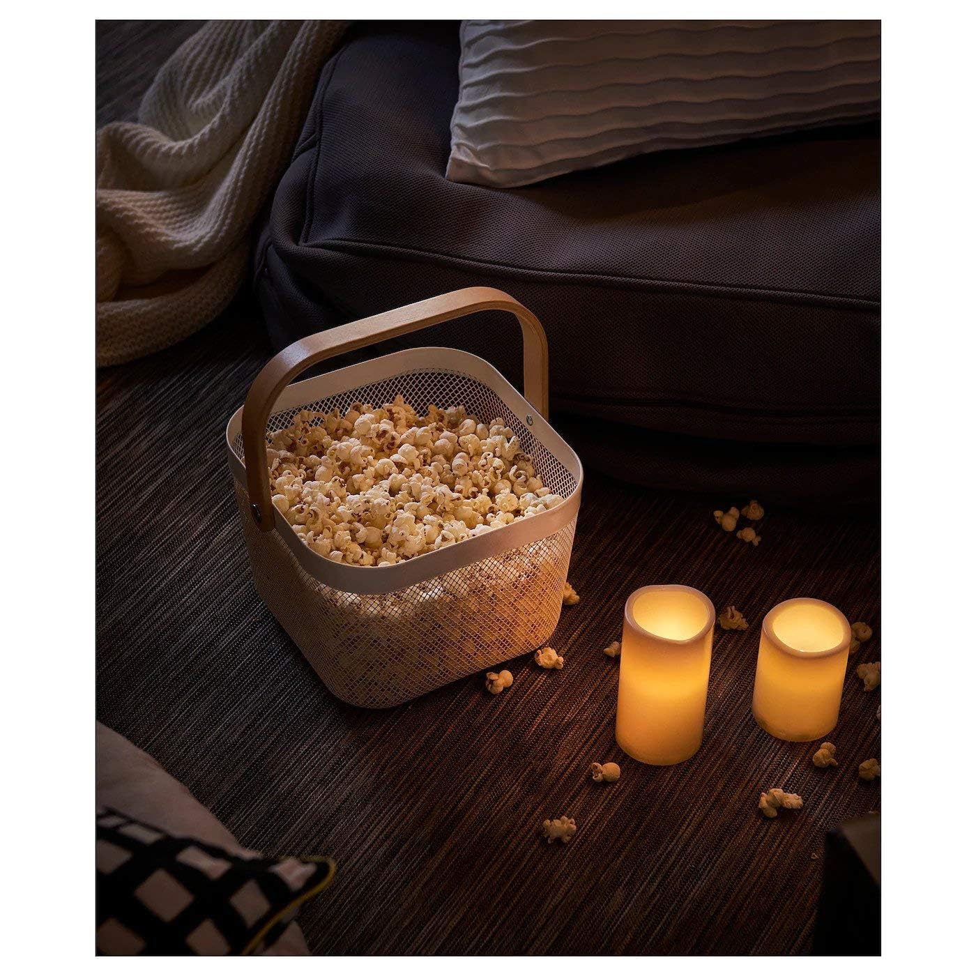 New, fully-charged LADDA AAA 900 mAh rechargeable batteries give 48 hours of light. One charging will last approx. 8 days if used 6 hours per day. Materials: Base material: ABS plastic, Paint Battery box: ABS plastic. Battery not included. 4 pcs AAA required. Built-in LED light source. LED life time approx. 20.000 hours. Light colour; warm white (2500K Kelvin). Package: LED block candle in/out, set of 2.