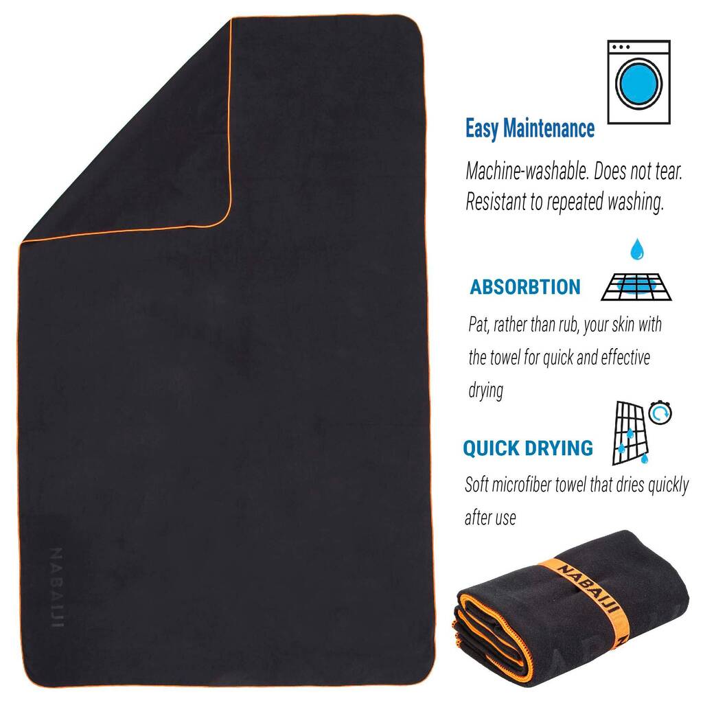 Microfiber Towel, Large Size, 80cm x 130cm, Dark Grey (Pack Of 1)