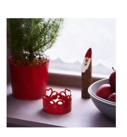 The warm light from the candle shines decoratively through the pattern on the candle holder. Material : Steel, Epoxy/polyester powder coating. Measurements : Diameter: 8 cm (3 “) Height: 5 cm (2 “).